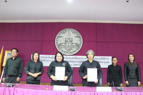 จากนั้น เป็นการชี้แจงรายละเอียดตัวชี้วัด ของกรมการพัฒนาชุมชน ประจำปีงบประมาณ พ.ศ. 2569 โดย ผู้อำนวยการกลุ่มงาน ทุกกลุ่มงาน และพิธีลงนามคำรับรองการปฏิบัติราชการระหว่างพัฒนาการจังหวัด กลุ่มงาน และสำนักงานพัฒนาชุมชนอำเภอทั้ง 20 อำเภอ โดยมีกลุ่มเป้าหมาย คือ บุคลากรสำนักงานพัฒนาชุมชนจังหวัดร้อยเอ็ดทุกคน จำนวน 131 คน