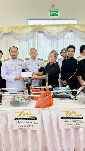 ในการนี้ นายทศพล บวรโมทย์ มอบหมาย นายสมศักดิ์ สระกาส ปลัดอำเภอ พร้อมด้วย นางสาวพิชญา ภวภูตานนท์ ณ มหาสารคาม พัฒนาการอำเภอจังหาร เจ้าหน้าที่สำนักงานพัฒนาชุมชนอำเภอจังหาร เครือข่ายกองทุนแม่ของแผ่นดิน และกลุ่มเป้าหมายได้รับการสนับสนุนอาชีพ จำนวน 2 ราย เข้าร่วมพิธีในครั้งนี้